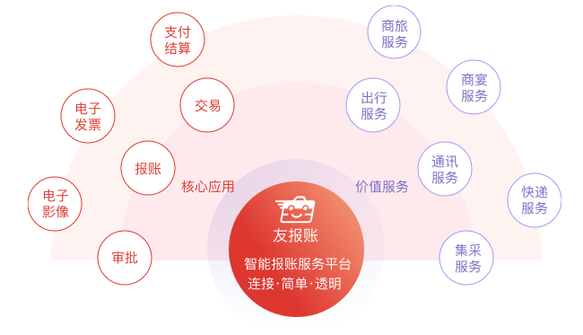 友報賬為企業(yè)提供專業(yè)化的報賬服務(wù)和連接服務(wù),創(chuàng)造企業(yè)財(cái)務(wù)新價值。作為企業(yè)財(cái)務(wù)數(shù)據(jù)采集終端,面向企業(yè)全員應(yīng)用,并整合社會資源,為企業(yè)員工提供端到端的一站式互聯(lián)網(wǎng)服務(wù),打通從申請、審批、交易、報賬、支付、核算、報告所有環(huán)節(jié),實(shí)現(xiàn)數(shù)據(jù)不落地,全線上應(yīng)用,全程管控